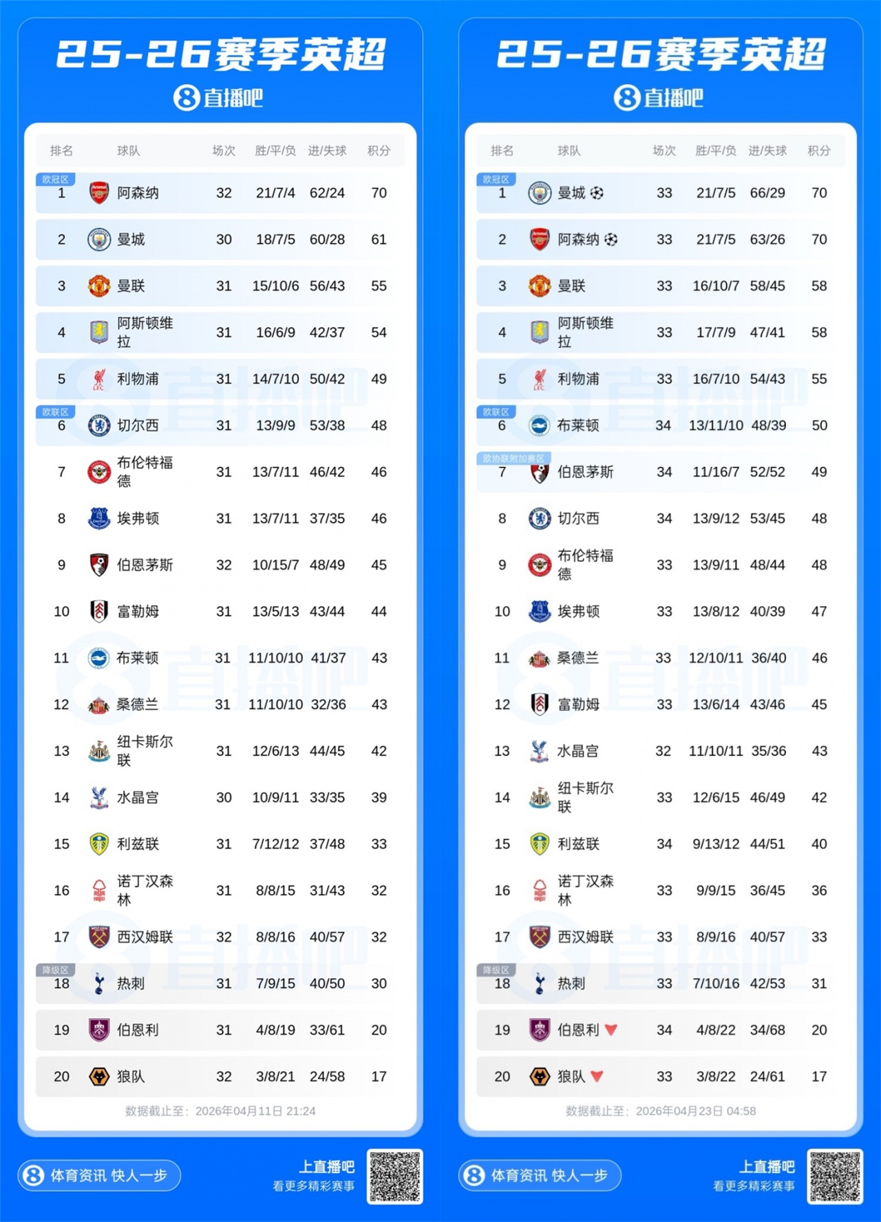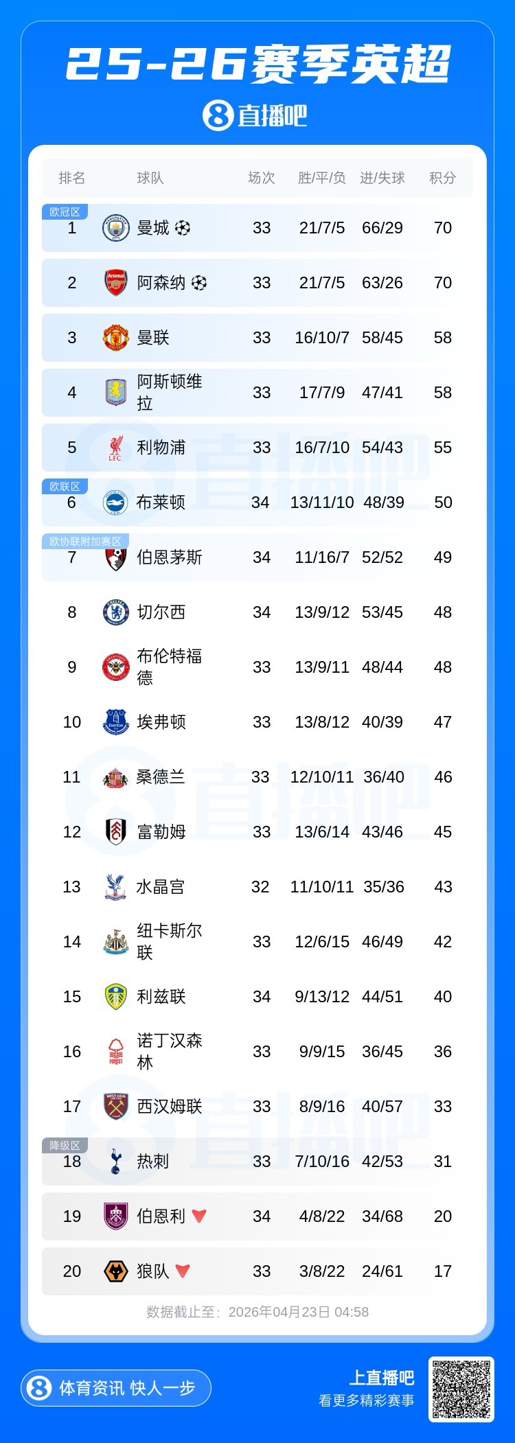 曼城超阿森纳登顶积分榜!伯恩利提前4轮降级;哈兰德破门,多库助攻。