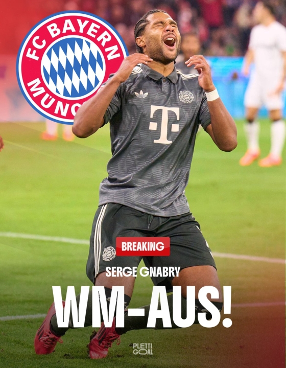 拜仁在此前官宣格纳布里内收肌撕裂,各方预计他将缺阵约3个月。他本人今日也通过社媒确认自己将缺席世界杯。
